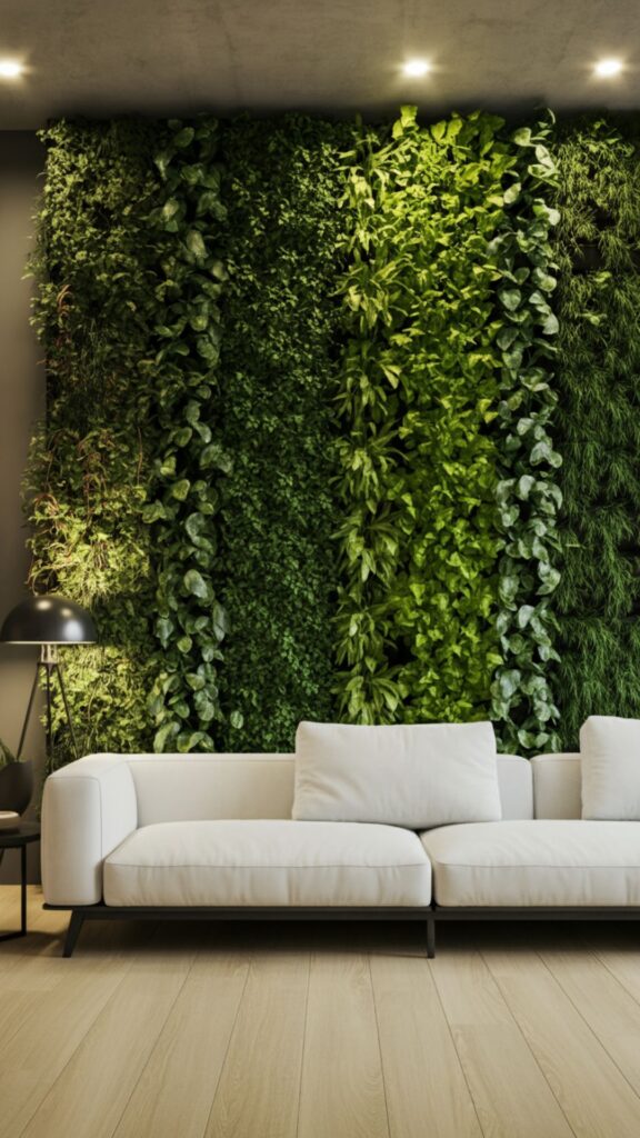 Bring the outdoors in with a living accent wall. A vertical garden filled with lush greenery is a breathtaking feature that purifies the air and adds life to your space. You can install a self-irrigating system or use a collection of wall-mounted planters.