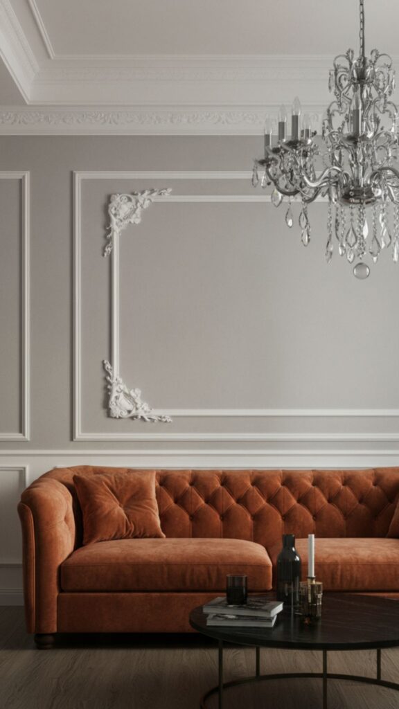 Paint the moulding and the wall inside it the same color for a subtle, textural effect, a technique known as “color drenching.” This creates a high-end, custom look that adds depth without overwhelming the space with a different color.