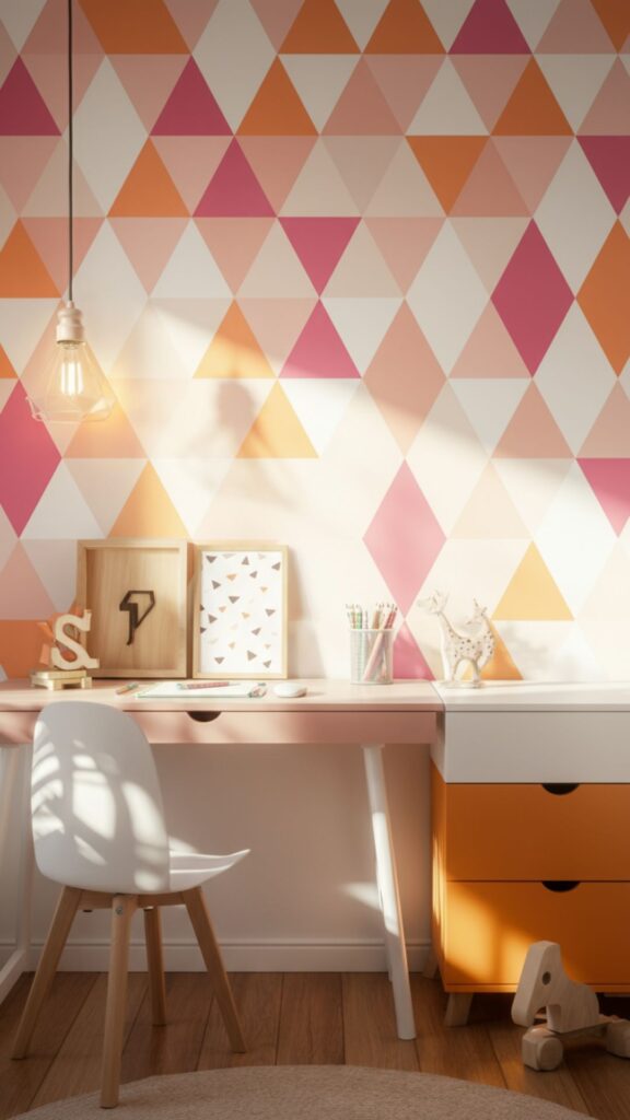 Elevate the painted accent wall with geometric patterns. Using painter’s tape, you can create triangles, chevrons, hexagons, or a custom abstract design. This is a budget-friendly way to add a dynamic, modern feel to any room.