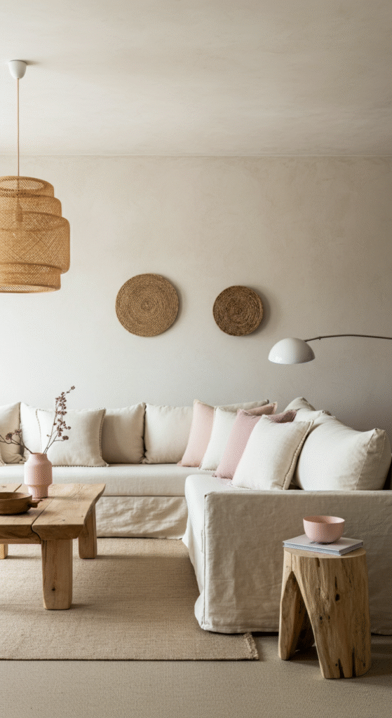 For those who crave a hint of color without straying from the minimalist aesthetic, pale blush is ideal. It adds a delicate warmth that complements wooden tones and light fabrics beautifully.