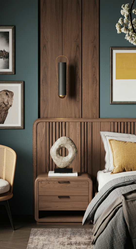 If you want your eclectic bedroom to feel grounded, natural materials are a must. Incorporate elements like wood, stone, or rattan. Wooden headboards, stone sculptures, and woven baskets add an earthy vibe to the room, making it feel connected to nature.