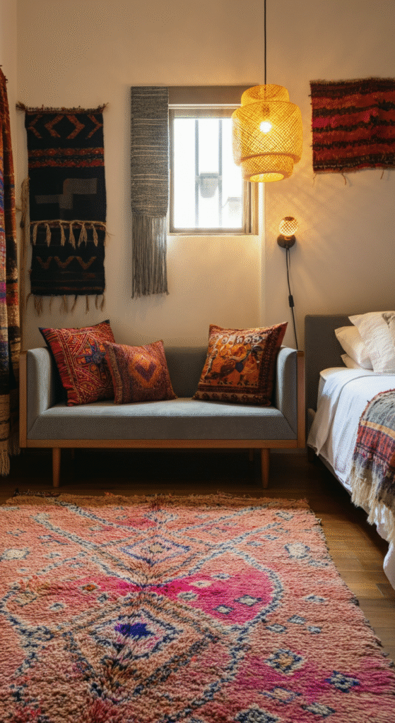 From Indian-inspired throws to Moroccan-style rugs, global textiles add depth and richness to your eclectic bedroom. Choose vibrant, handwoven pieces that have cultural significance and mix them with more neutral items to allow the textures to shine.