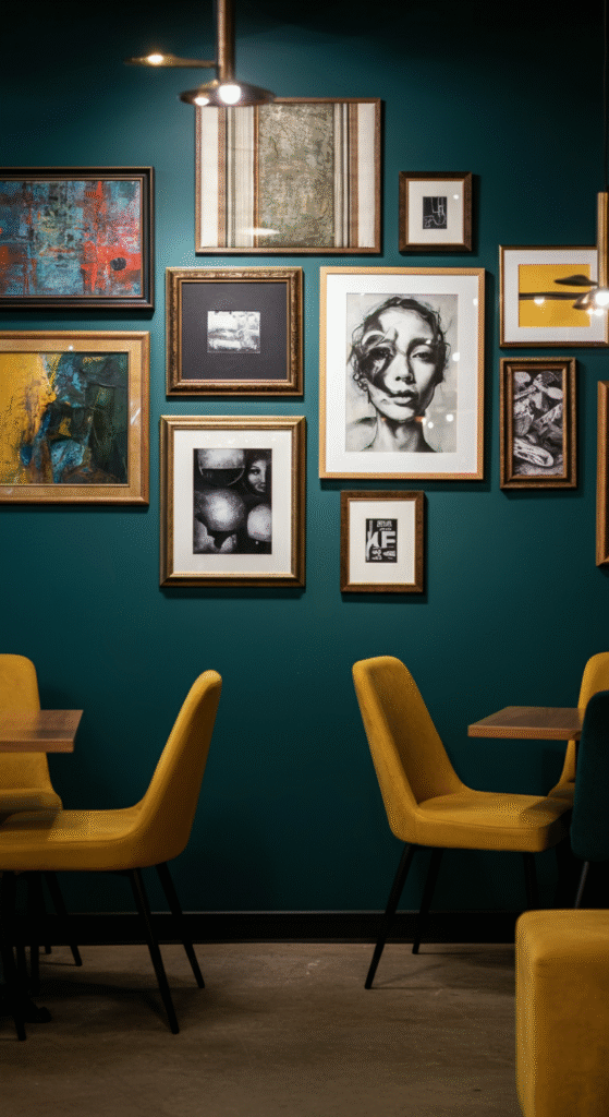 Bold wall colors, like deep teal or mustard yellow, are a great way to add character. They serve as a striking backdrop for eclectic furniture and décor.