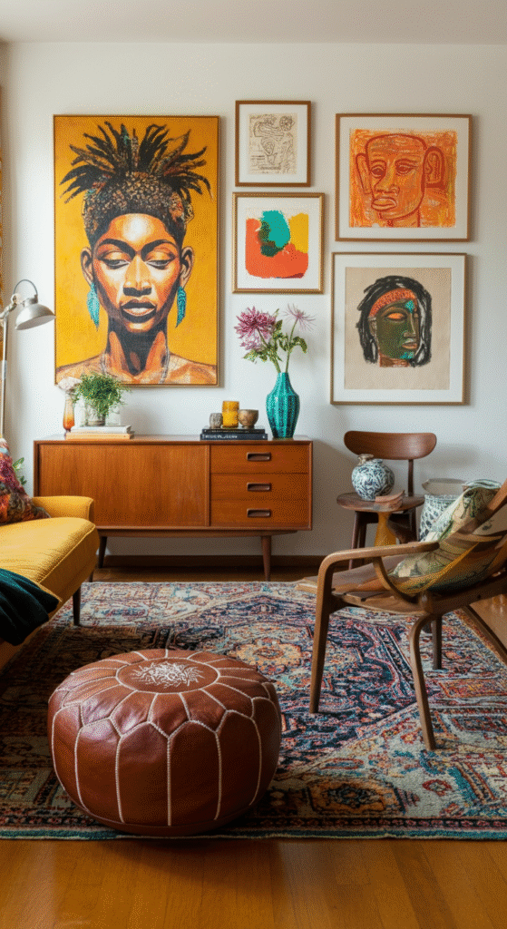 • Patterns and textures (think Moroccan rugs, tribal throws, bold prints) amplify the eclectic feel.