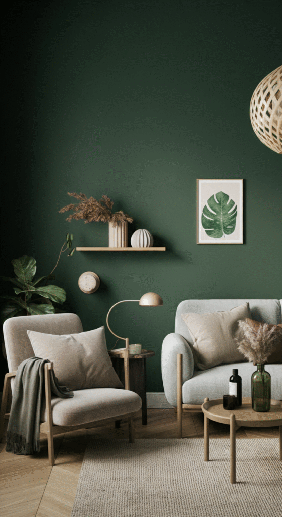 For example, pairing deep green walls with light-colored furniture and neutral tones like beige or gray can prevent the green from feeling overwhelming. Adding plenty of natural light will also help soften the effect, ensuring the room feels fresh rather than heavy.