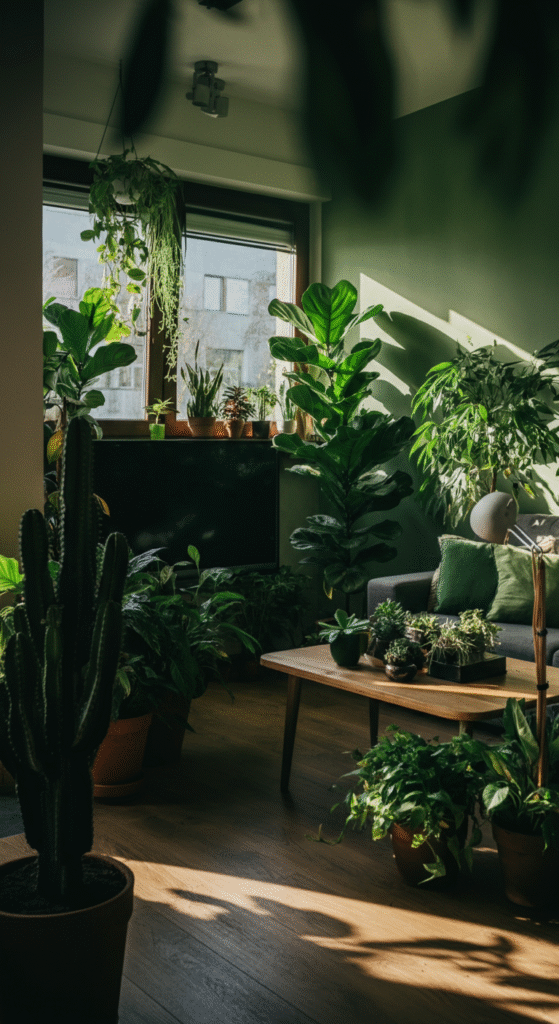- Large Indoor Plants: Incorporate large plants, like fiddle-leaf figs or palm trees, in your living room for a lush, tropical vibe. These plants will blend seamlessly with green walls or accents, creating a harmonious balance.