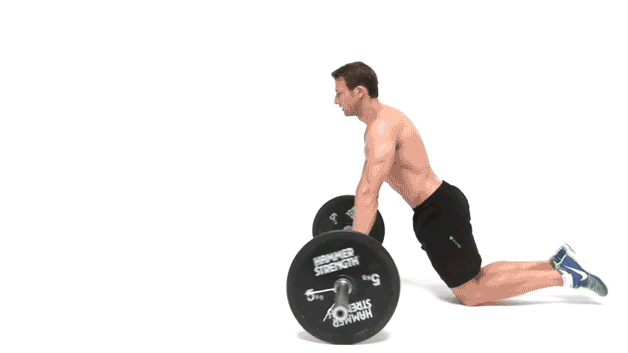 • Kneel behind it, gripping the bar with both hands.