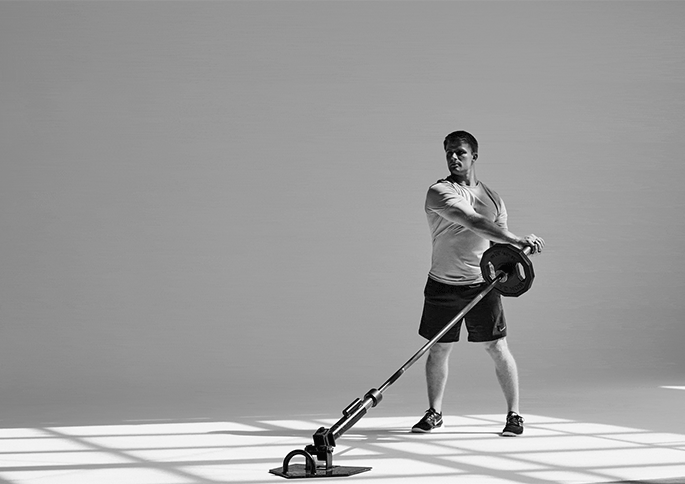 • Insert a barbell into a landmine or corner.