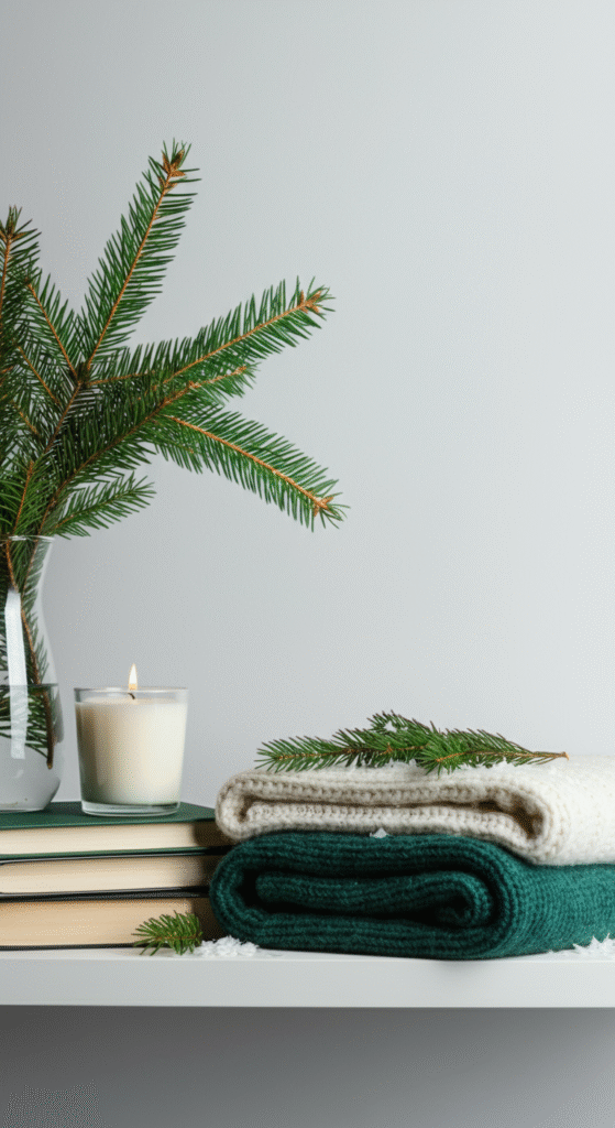 This style feels clean, natural, and airy. It removes all holiday clutter while keeping a seasonal scent floating gently in the air.
