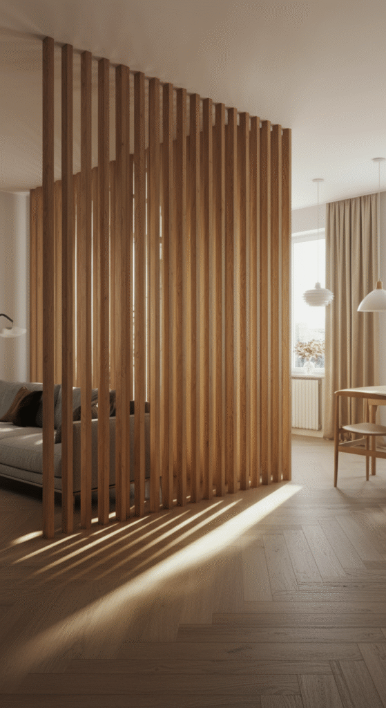9. Minimalist Wooden Panels for Subtle Separation