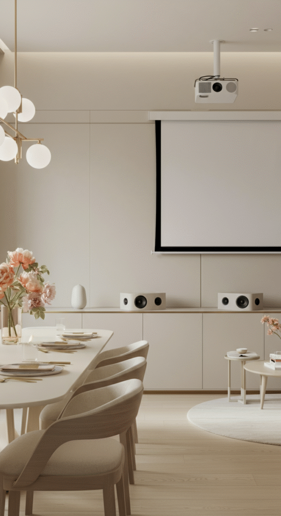 Consider adding smart home technology that blends seamlessly into your living and dining room combo. For instance, hidden speakers or a retractable projector screen can save space while improving your home’s entertainment value.