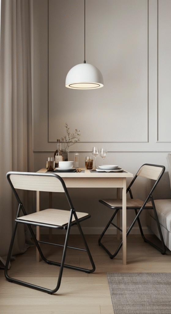 When you’re short on space, furniture that can fold up or collapse is a game-changer. Foldable dining chairs, collapsible tables, or even wall-mounted desks that you can fold away when not in use provide flexibility.