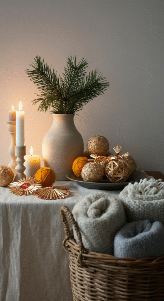 Place them thoughtfully on an entryway table and the setup becomes a quiet nod to centuries-old Christmas traditions.