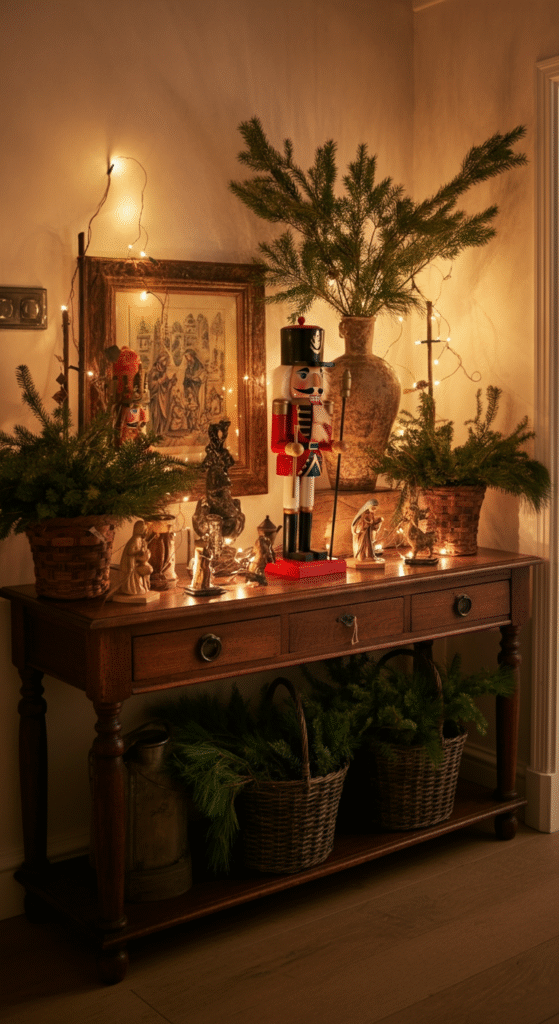Vintage Christmas entryway table décor isn’t just about styling—it’s about capturing emotional warmth, historical charm, and deeper storytelling.