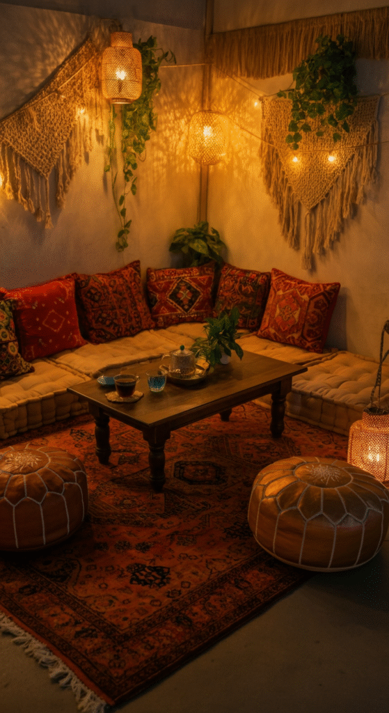 This grounded style draws inspiration from Moroccan and Indian homes, where gatherings often happen close to the floor. It instantly gives your space a relaxed, global vibe.