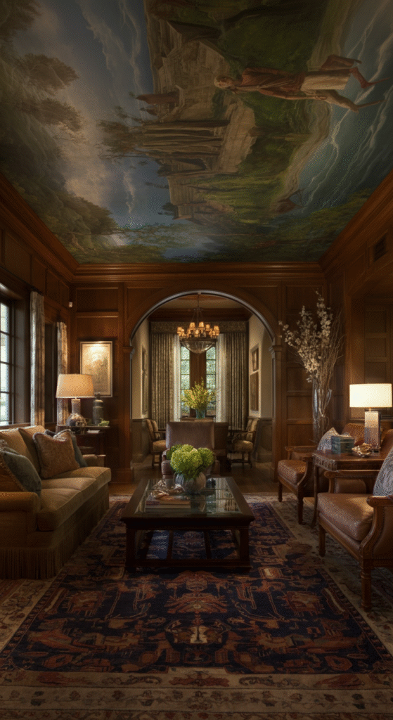 For a truly personalized touch, why not consider a mural ceiling? Murals on the ceiling can transform your living room into a work of art, whether you prefer landscapes, abstract art, or something more whimsical.
