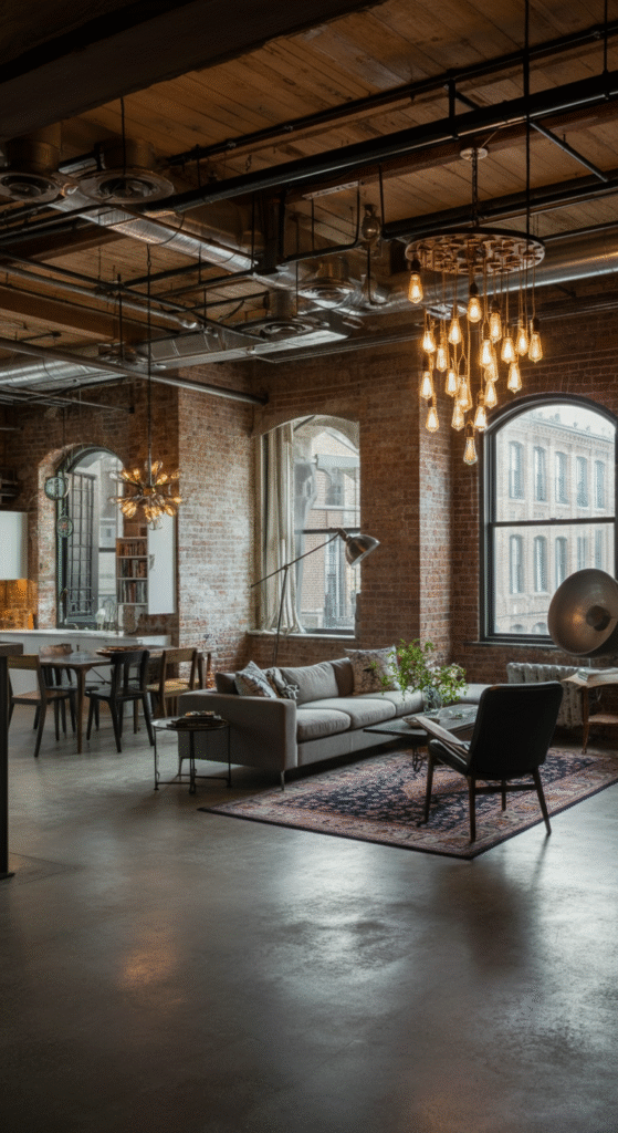 The unfinished look, paired with sleek modern furnishings, can turn your living room into a trendy haven.