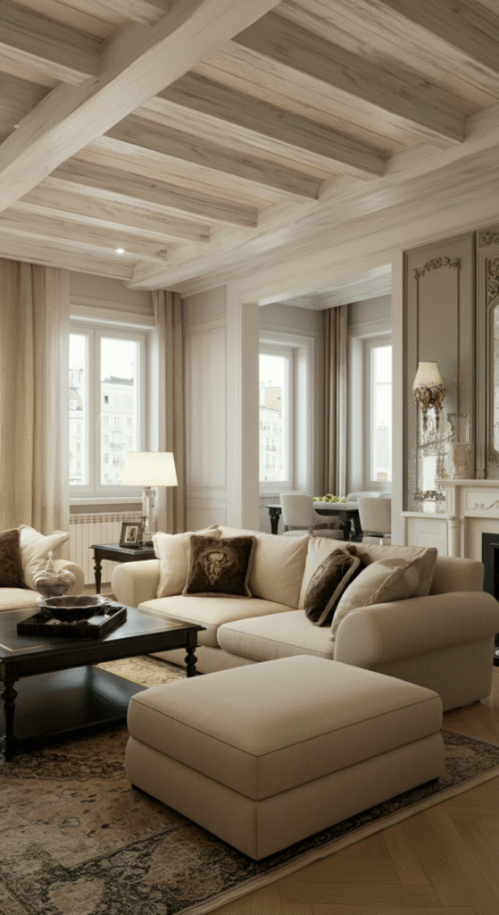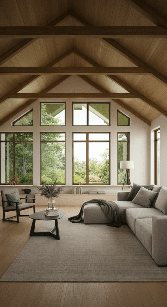 This design often uses wooden beams, giving a rustic yet refined feel. You can paint the beams in dark hues to create contrast, or keep it natural for a lighter, more airy vibe.