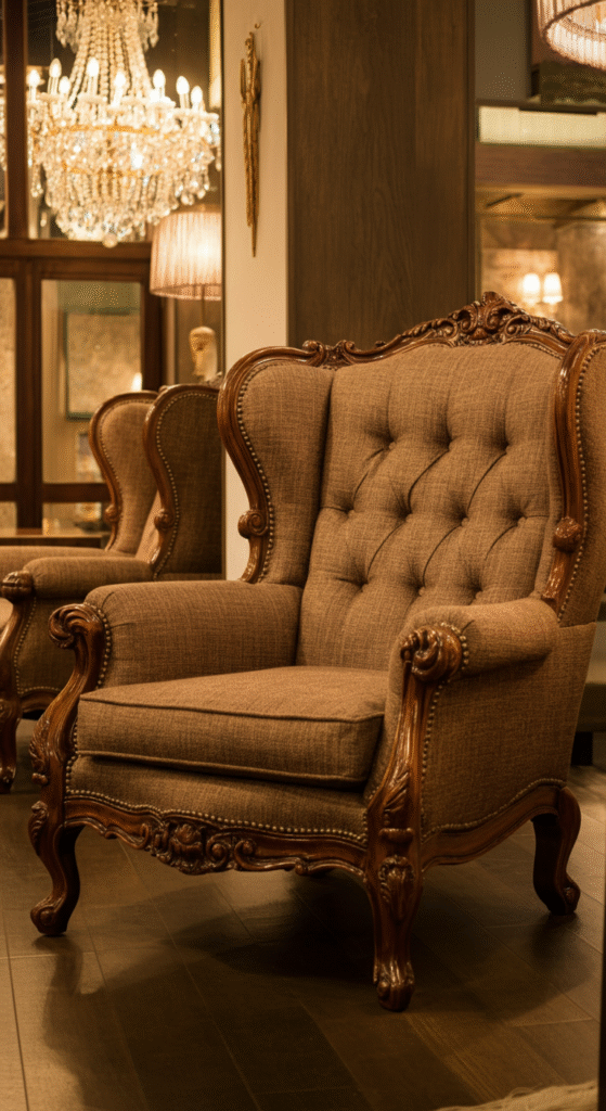 For a cozy and classic seating option, a traditional wingback chair is a great choice. These chairs are perfect for reading corners, or as accent pieces to complement your main seating area.