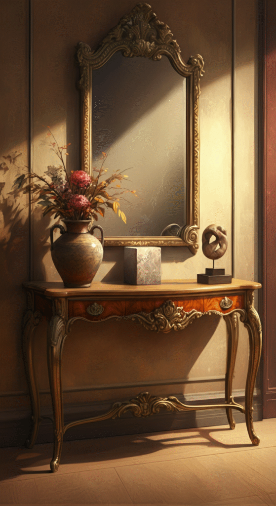 A classic console table is a versatile piece that can be placed against the wall, in a hallway, or beneath a window. Whether used for holding decorative objects, family photos, or flowers, the console table adds a refined touch to any room.