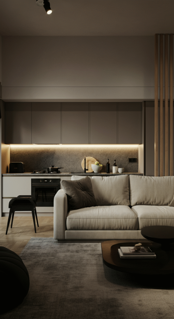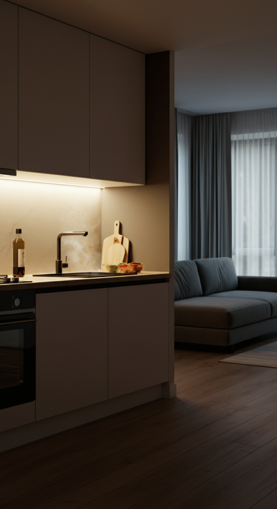 Lighting is often underestimated in living room and kitchen combos. Relying on a single overhead fixture makes the space feel flat. Instead, layer lighting with pendants over islands, ambient light in the living area, and task lighting under cabinets.