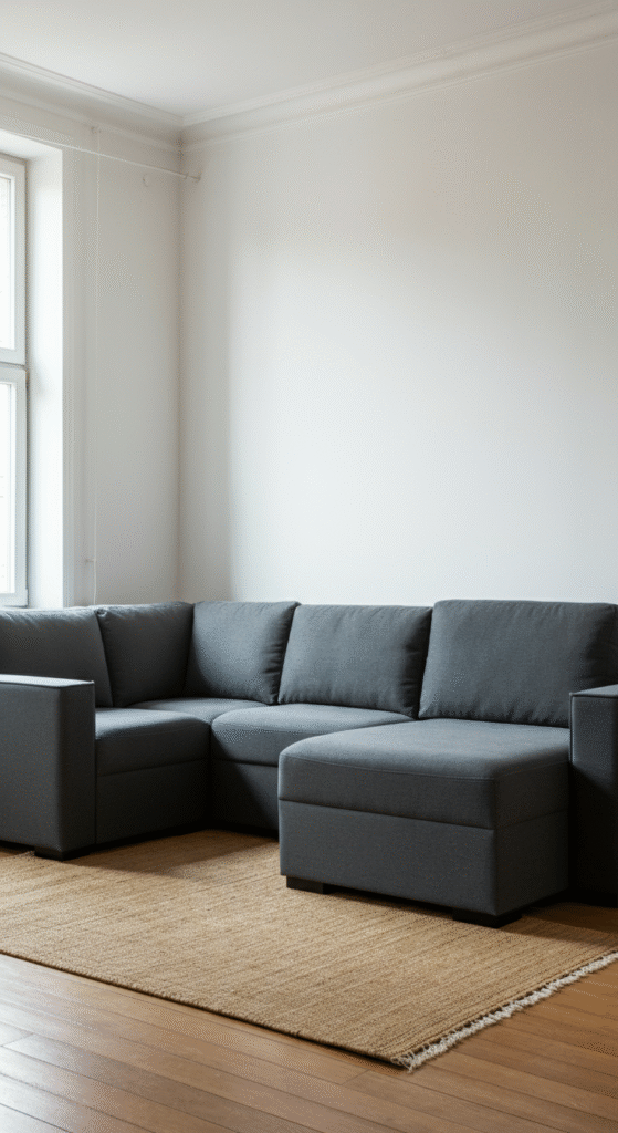 Rugs help define zones, but many people choose rugs that are too small. In the living area, all front legs of furniture should ideally touch the rug. An undersized rug makes the room feel disconnected.