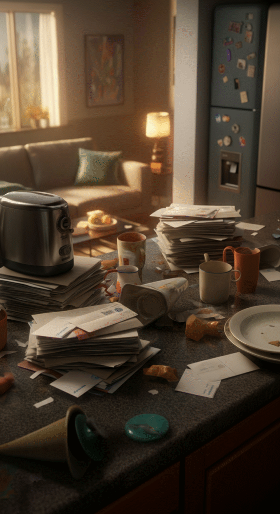 When the kitchen is part of your main living space, clutter is instantly visible. Piles of mail, unwashed dishes, or too many small appliances disrupt the clean look.