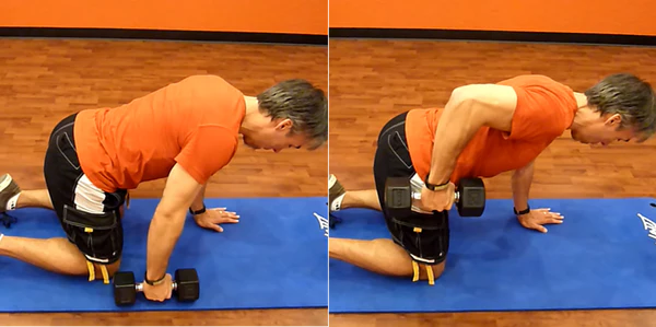 Targets the upper back and core stability, mimicking dumbbell rows without equipment.