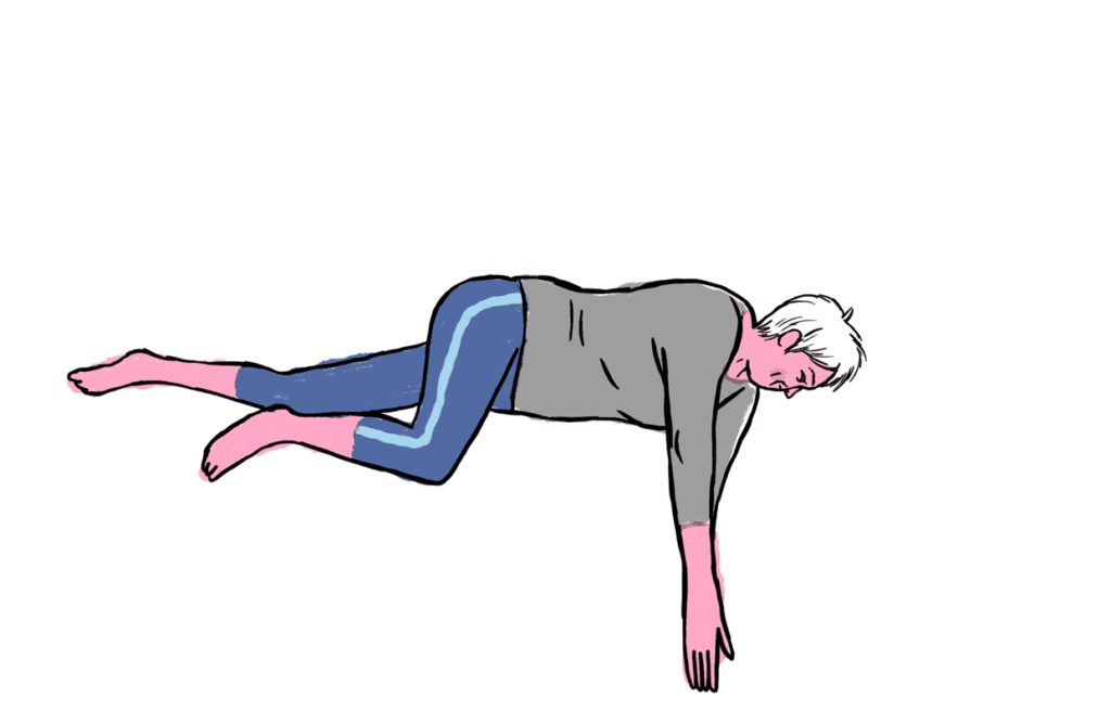 - Simultaneously lift your arms, chest, and legs off the floor.