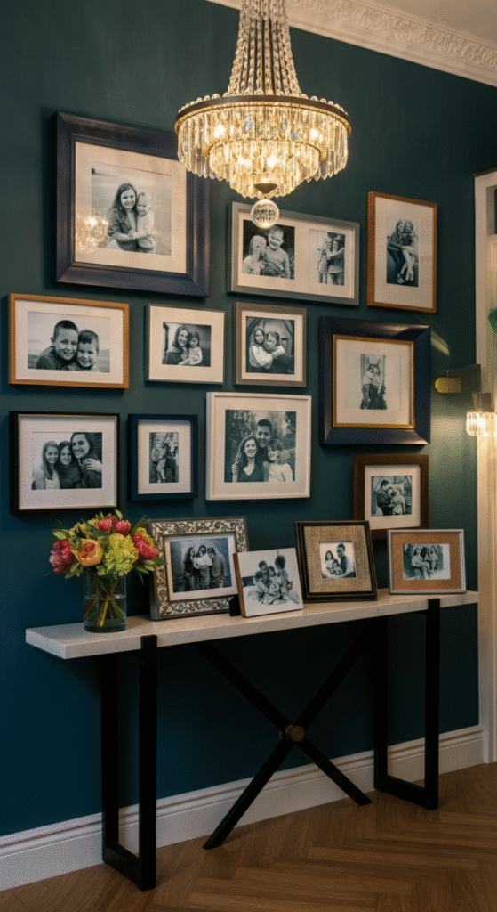 Adding family photos in elegant frames or as part of a curated display adds warmth and makes your entryway feel truly yours.