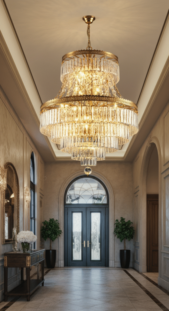 Lighting is crucial to setting the mood in any room, and your entryway is no different. A bold chandelier or pendant light immediately grabs attention when guests walk in.