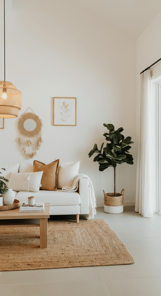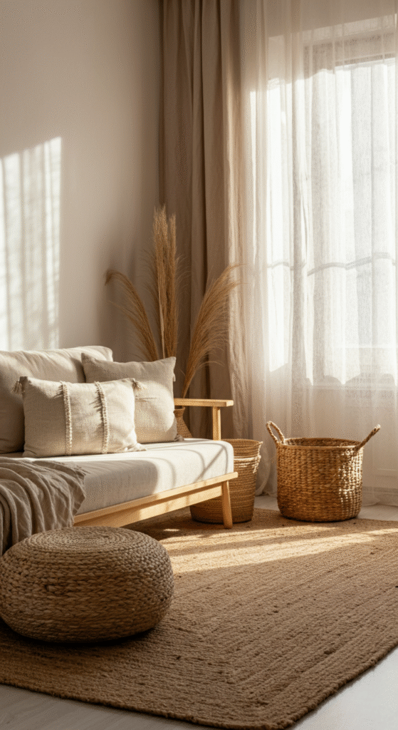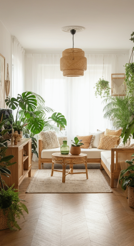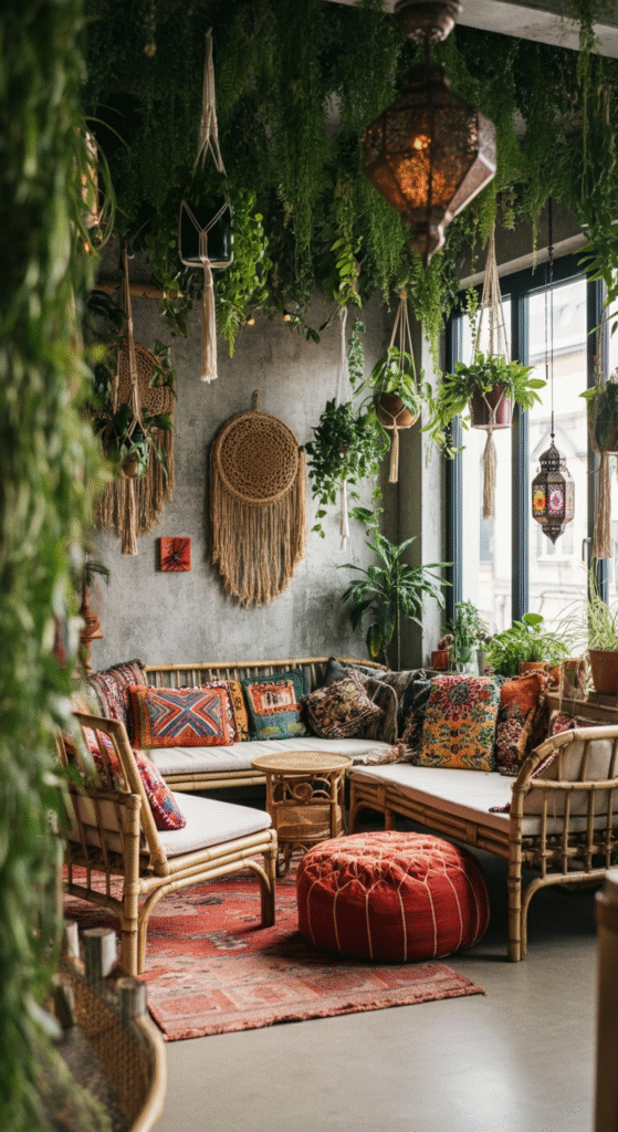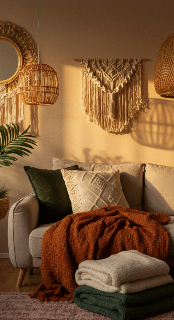 Add sunlight streaming through sheer curtains for that golden-hour glow—because Boho is all about warmth and mood.