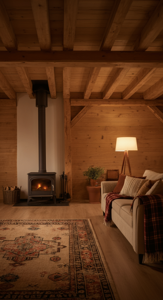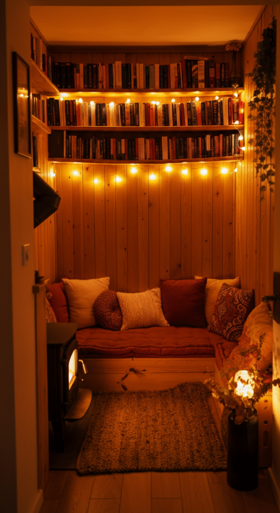 To make it stand out, add soft golden lighting—nothing captures coziness like warm ambient light against dark wood.