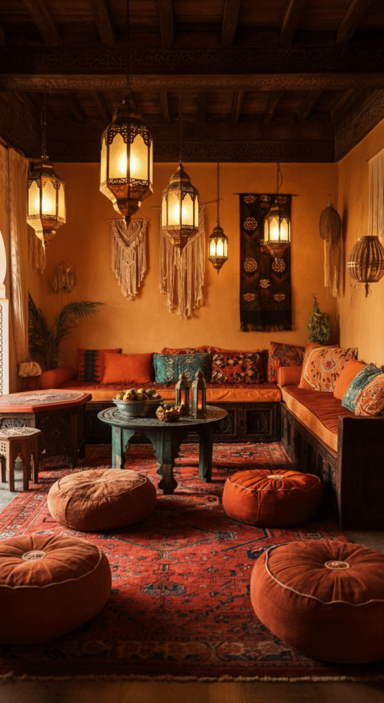 To make it even better, add floor cushions and poufs—symbols of relaxed, grounded living that define Moroccan Boho vibes.