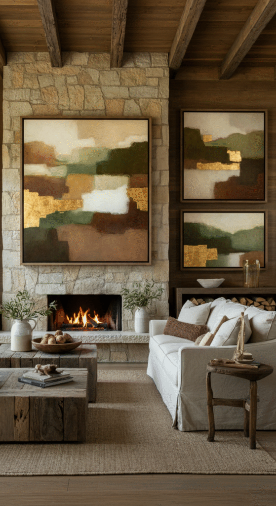 Wall art is a great way to add personality and charm to your living room while staying within the earthy theme. Look for pieces that feature landscapes, nature scenes, or abstract works in warm, earthy tones.