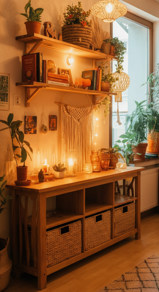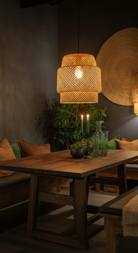 Textiles like jute or sisal are excellent choices for rugs or baskets, adding an earthy, rustic touch. These materials complement wood and greenery, bringing warmth and texture to the space.