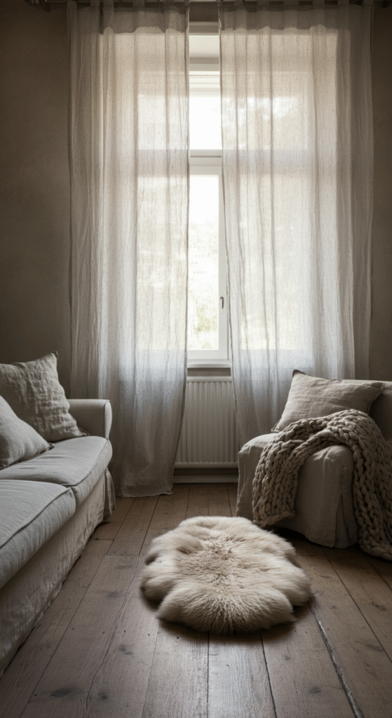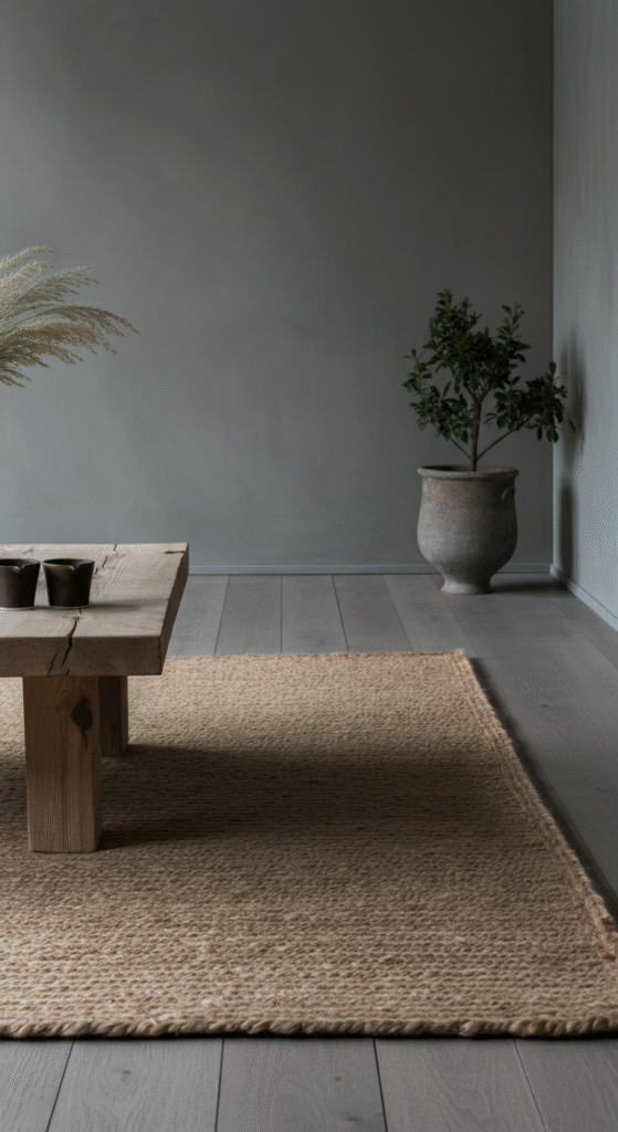 A large, textured rug can anchor the space, providing comfort underfoot while enhancing the earthy vibes of the room. Jute rugs, in particular, bring a rustic charm to the space, while wool adds softness and luxury.