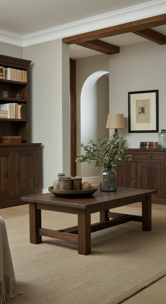 Fun Fact: Wood, especially in darker tones, can actually help absorb sound, making your living room quieter and more relaxing.