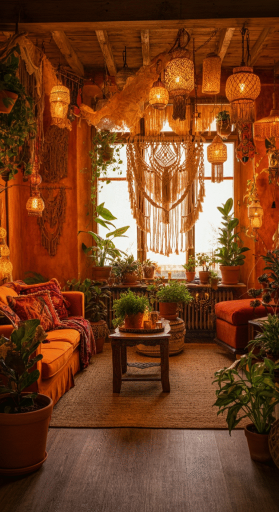 Boho-inspired living rooms often include vintage pieces, macramé wall hangings, and a mix of textures that create a lived-in, cozy feel. These elements are perfect for adding a bit of eclectic charm to your space while keeping the overall vibe grounded in nature.