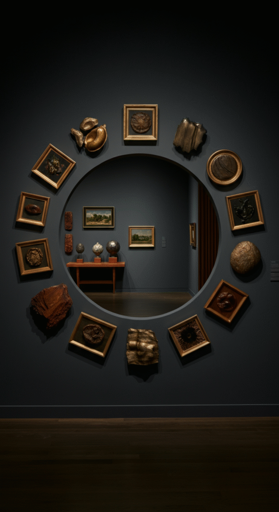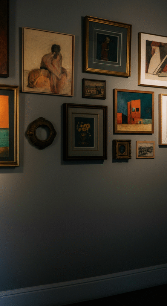 If you’re looking for something truly unique, the circular gallery wall layout could be the answer. In this design, the artwork is arranged in a round formation, creating a striking focal point that feels balanced and harmonious.