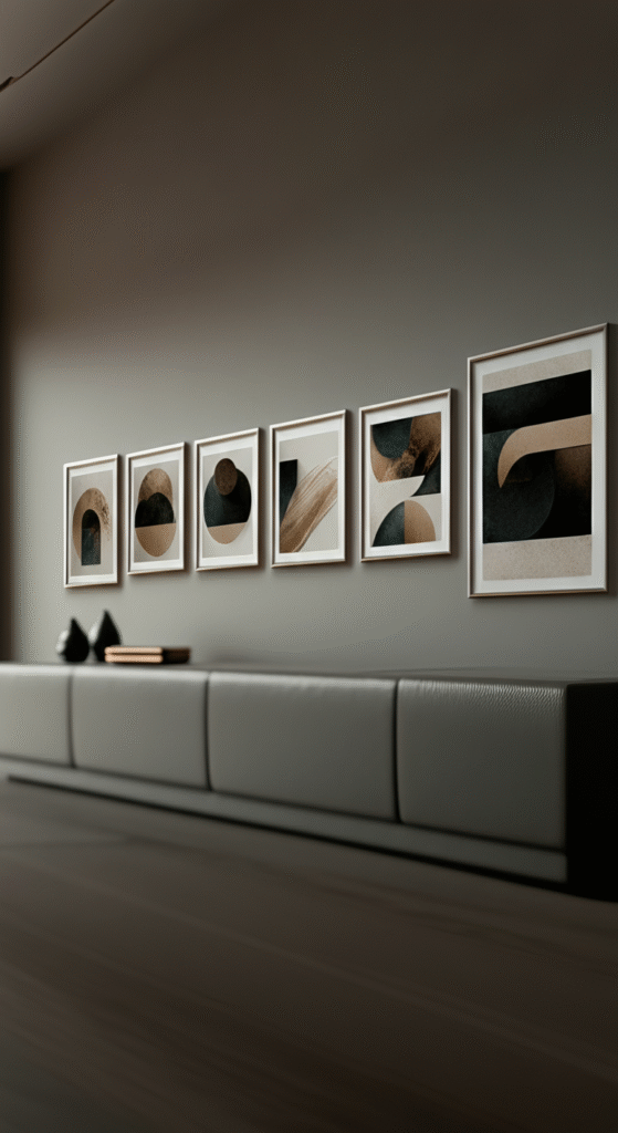 A linear gallery wall is perfect for those who appreciate minimalism and clean lines. This layout involves hanging your artwork in a single row, either horizontally or vertically. The linear arrangement can work well above a console table, a long bench, or on a narrow wall.