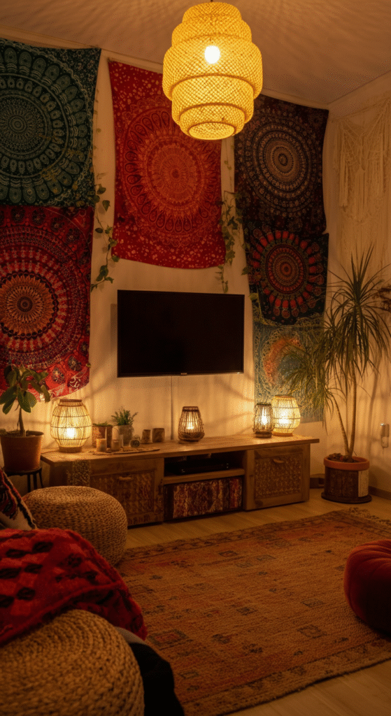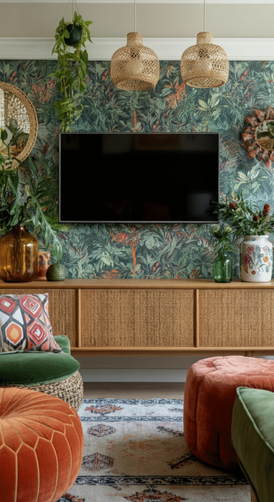 The TV wall isn’t just a backdrop for your favorite shows; it’s the visual anchor of your living space. In eclectic and boho interiors, it becomes something more — a blend of culture, creativity, and character. The beauty of boho design lies in its freedom: no strict rules, just layers of colors, textures, and memories that feel like you.