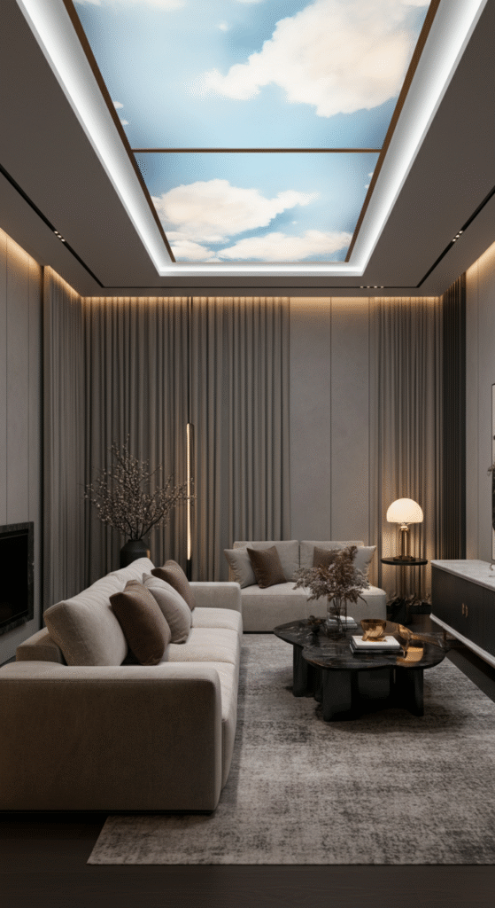 From hidden LEDs and floating ceilings to warm wooden panels and sleek pendants, each design tells a quiet story of balance and clarity.