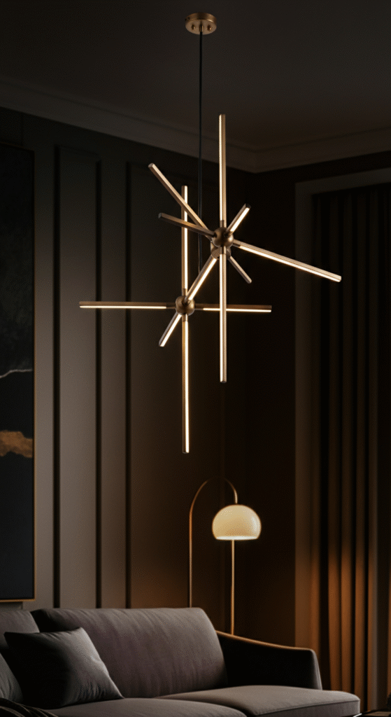 These fixtures work beautifully over long sofas or rectangular coffee tables. Choose black, brass, or matte white finishes for a contemporary touch.