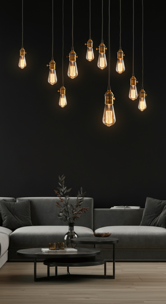If you love edgy simplicity, exposed bulb fixtures deliver just that. A cluster of Edison bulbs or modern LED bulbs suspended from minimal cords creates a raw, artistic feel.