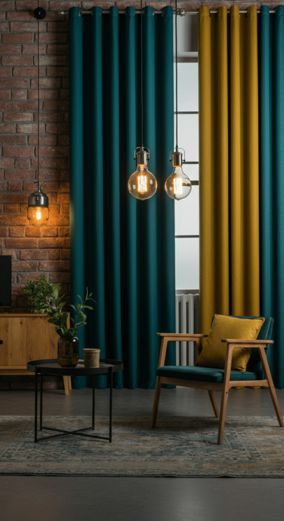 Industrial-style curtains often feature dark, muted colors, complemented by raw or matte metal accents for a bold statement.