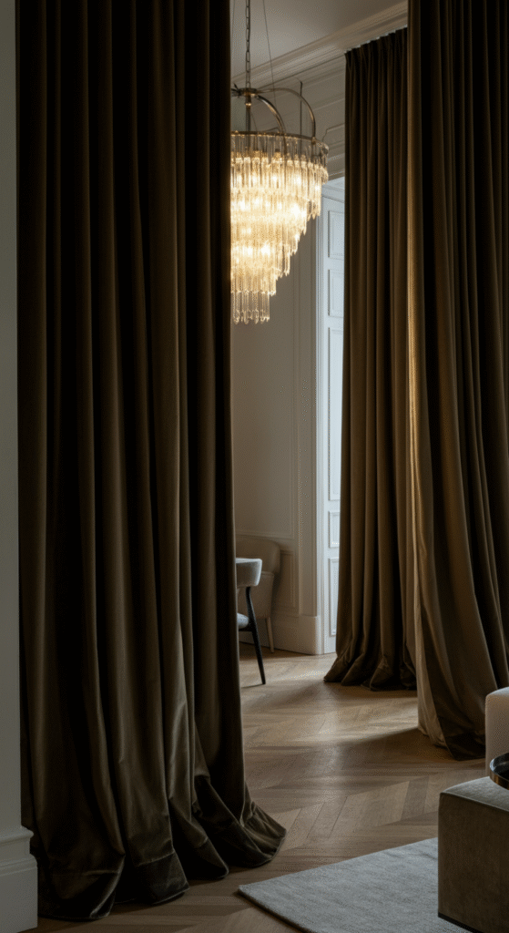 Velvet is the epitome of luxury and sophistication. If you’re aiming for a high-end feel in your living room, velvet curtains can instantly elevate the ambiance.