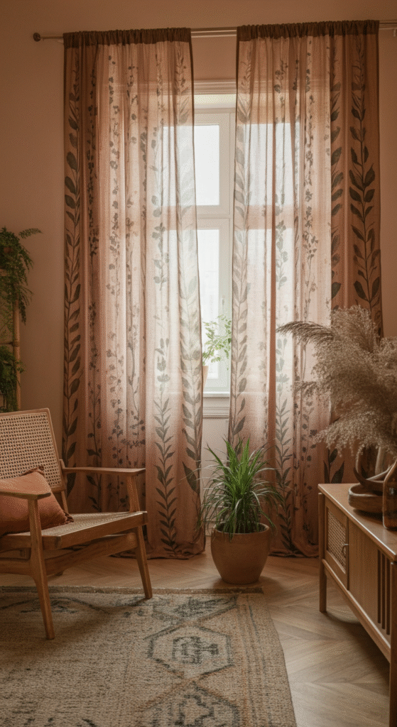 Bring the outdoors in with nature-inspired curtains featuring botanical prints. These curtains can create a serene, calming atmosphere, perfect for creating a relaxing environment.