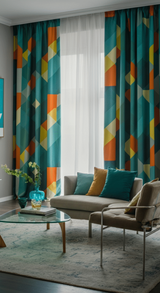 For those who love to embrace bold design, geometric-patterned curtains can be an exciting way to introduce personality into your living room.