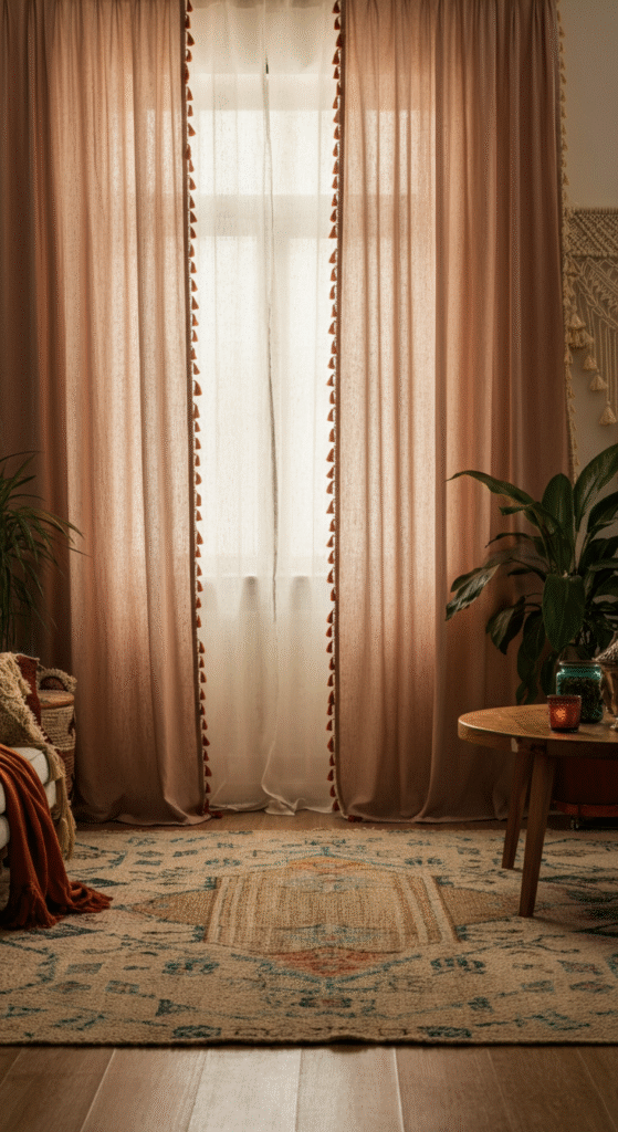 If you’re drawn to bohemian-style décor, curtains with tassels can add a fun, free-spirited touch to your living room.